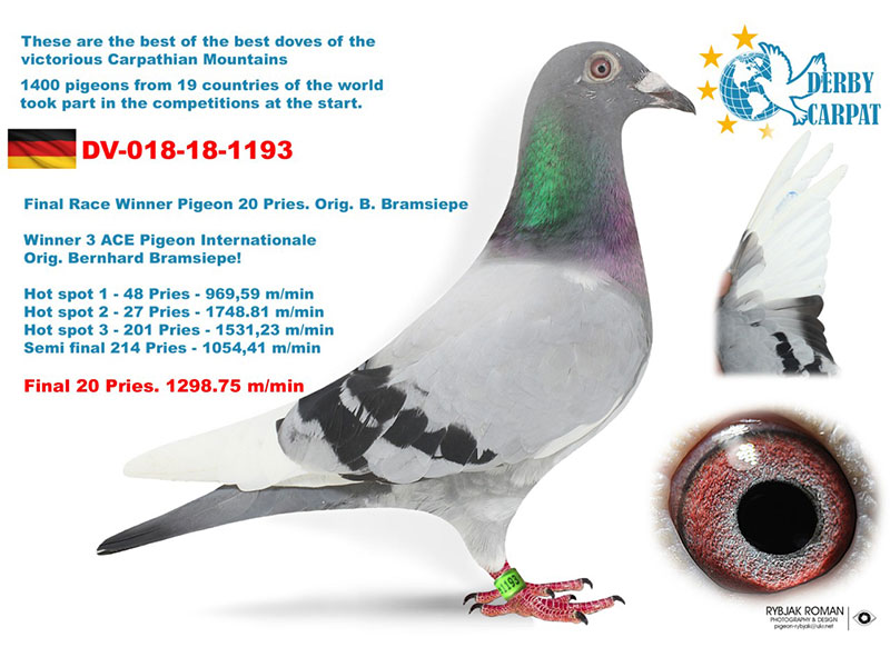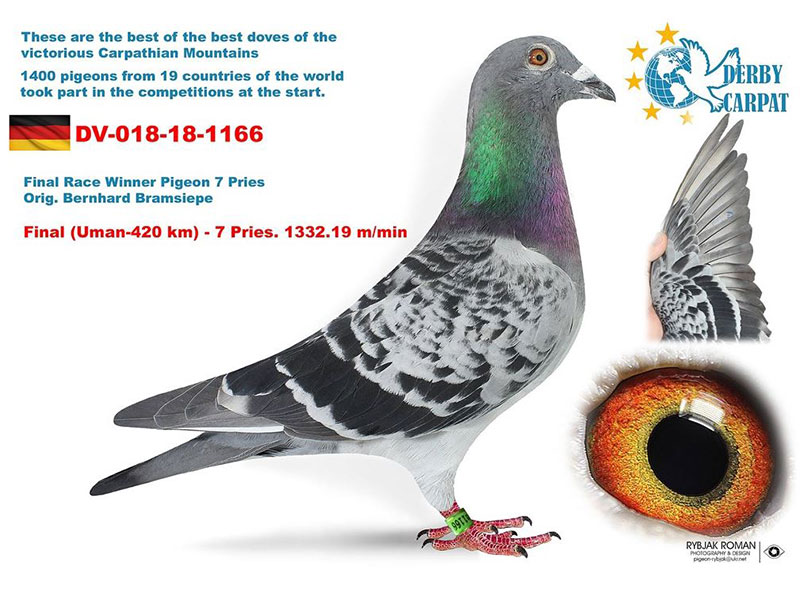 als einzige Taube mit 7/7 Preise davon 2. | 7. | 58. | 74. | 79. | 101. | 132 eine außergewöhnliche Leistung der Jung-Taube 018-18-1014 von 100 bis 520 km. |